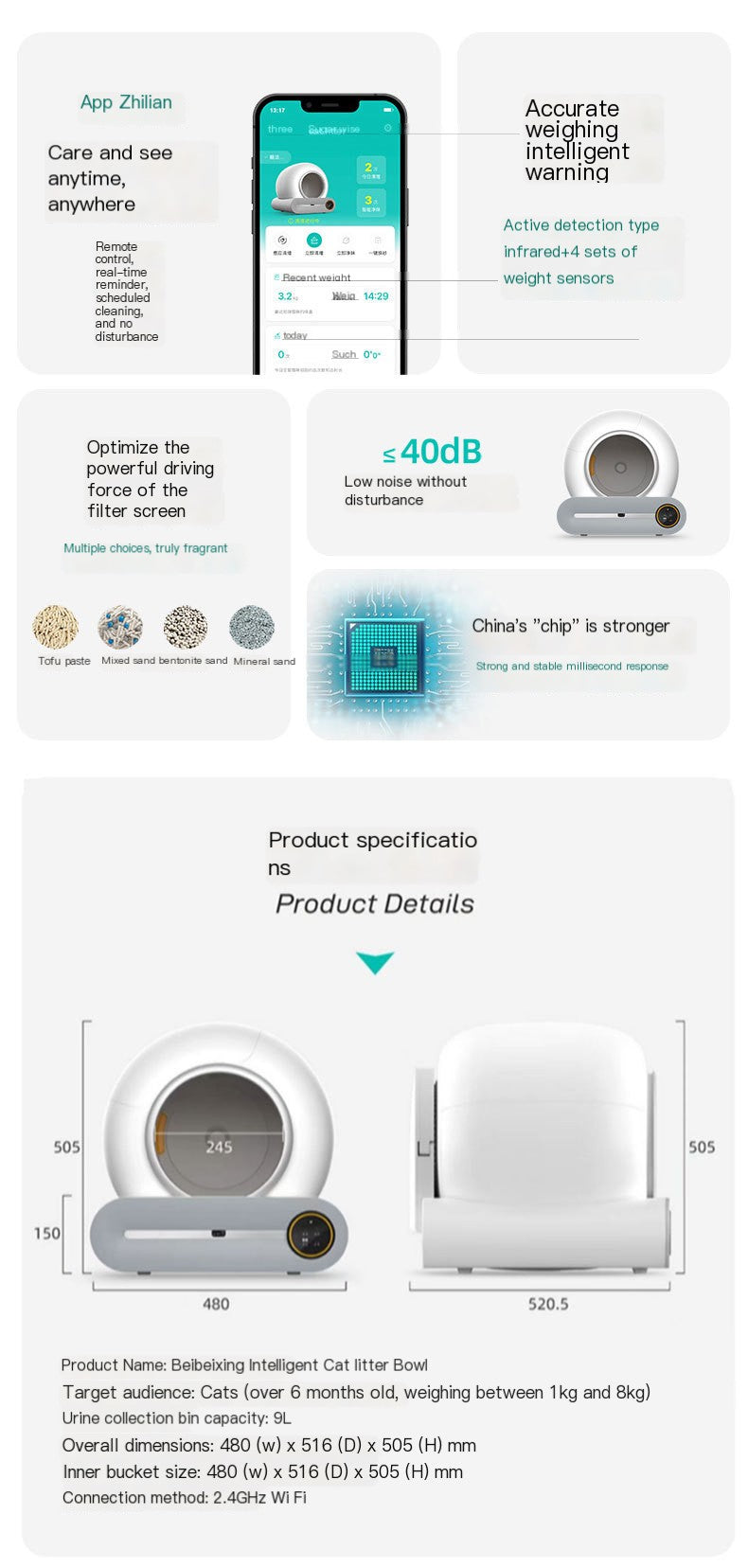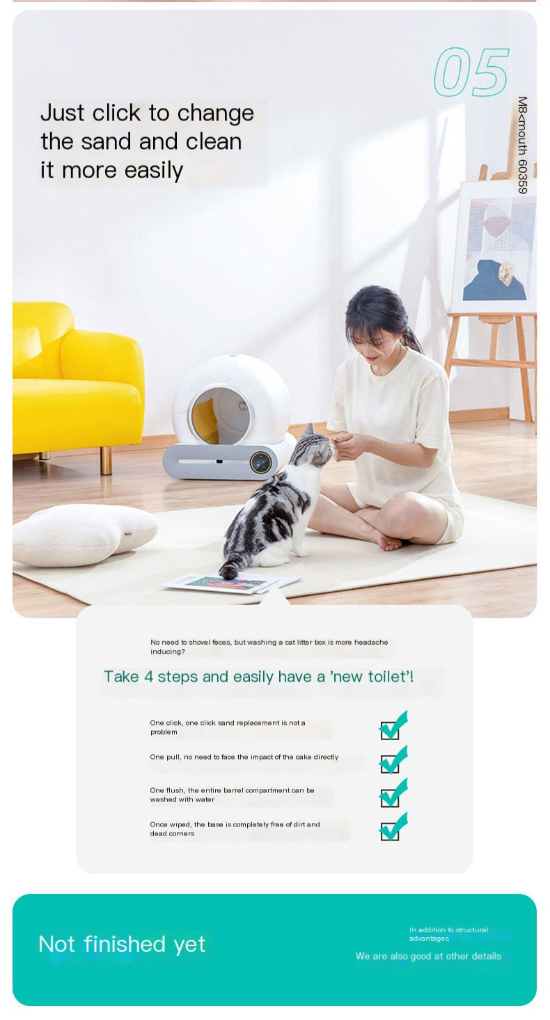 Transforme a rotina de cuidados com seu pet com a nossa revolucionária Caixa de Areia Inteligente Automática para Gatos . Esta caixa de areia de última geração oferece uma experiência de limpeza incomparável, garantindo um ambiente fresco e livre de odores para o seu felino. Chega de limpar com pá ou lidar com cheiros desagradáveis; nossa tecnologia avançada cuida de tudo!